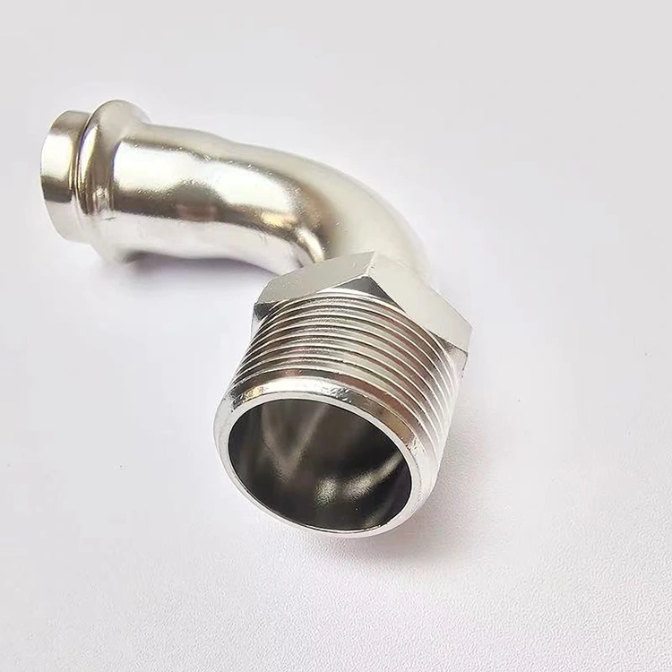 Shenchi компаниясының жоғары тиімді Double-Press Male NPT 90 градус шынтағы жоғары сапалы тот баспайтын болаттан жасалған және дәл басу арқылы жалғау дизайнымен ерекшеленеді. Орнатуды дәнекерлеусіз аяқтауға болады, бұл қосылудың тұрақтылығын қамтамасыз ете отырып, орнатудың қарапайымдылығы мен ыңғайлылығына қол жеткізеді.